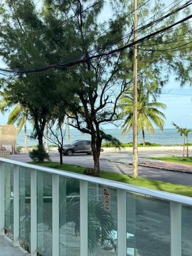 Flat com sacada na quadra do mar
